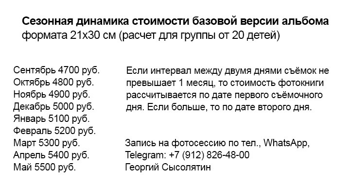 Фотосессия детей в детском саду для создания выпускного альбома индивидуальной верстки, фотографии в группе, на развивающем занятии, в музыкальном зале, в спортивном зале, за обедом и завтраком, в спальне. Осенняя, зимняя, весенняя прогулка. Вместе создаём уникальный выпускной альбом — ФОТОИСТОРИЮ ВАШЕГО РЕБЕНКА! Решено главное противоречие, которое возникло у родителей вашей группы при выборе фотографа: одни хотят ДЕШЕВЛЕ, другие — ЛУЧШЕ! После фотосъёмки каждый родитель сможет посмотреть все фотографии со своим ребенком в персональной онлайн-галерее и самостоятельно выбрать фото в альбом! Понравилось больше фото — можете добавить платные развороты. Каждый родитель сам решает какой альбом заказать — дешевле или интереснее и содержательнее!